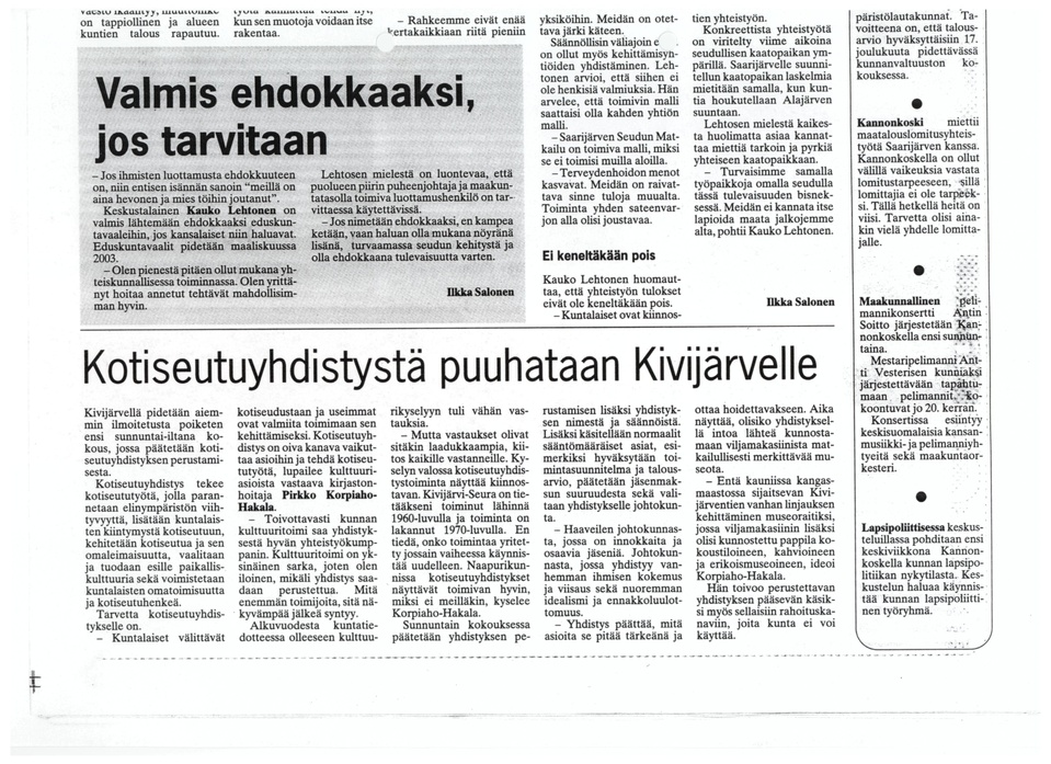 - aloitettiin kotiseuturetket