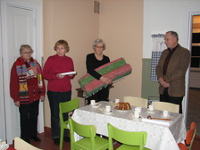 Johtokunnan jouluruokailun jälkeen muistettiin vielä paria henkilöä. Jäsen Eeva muisti Ahtia, Kotiportti-lehtien aktiivisinta myyjää... samoin Pirkkoa Kotiportti-lehden kasaamisesta.